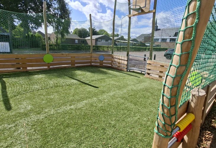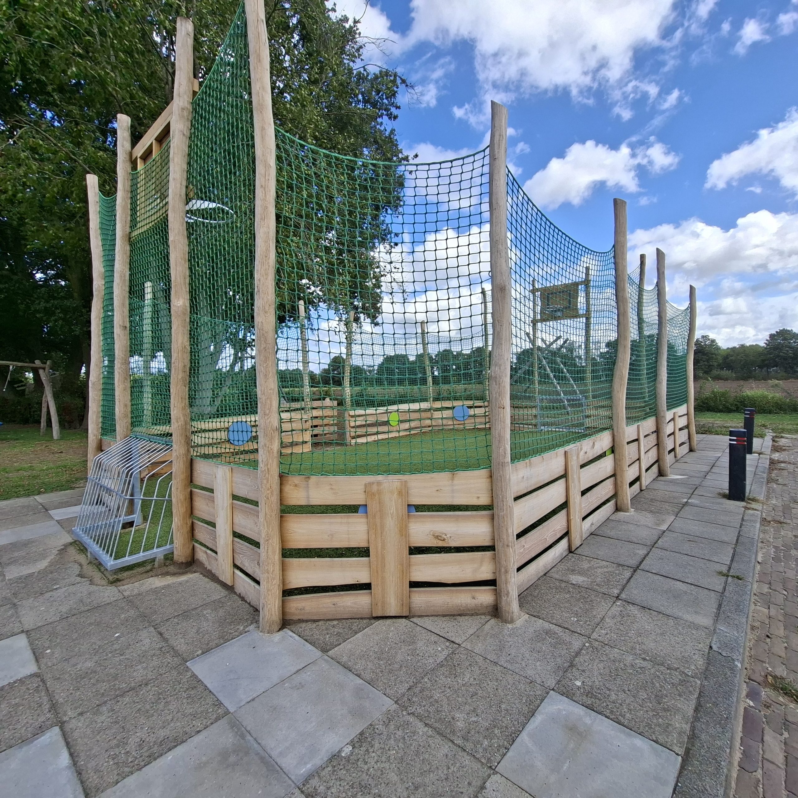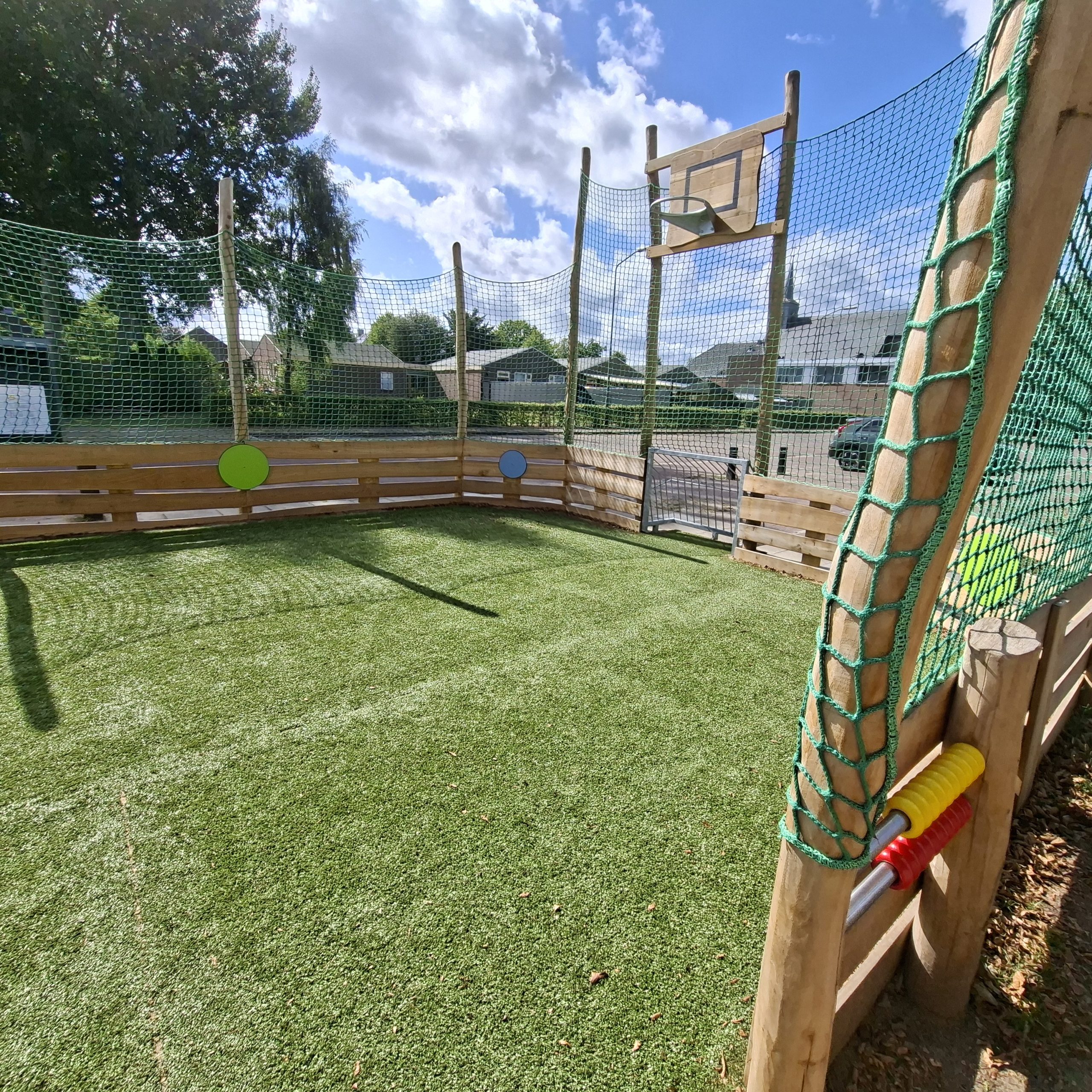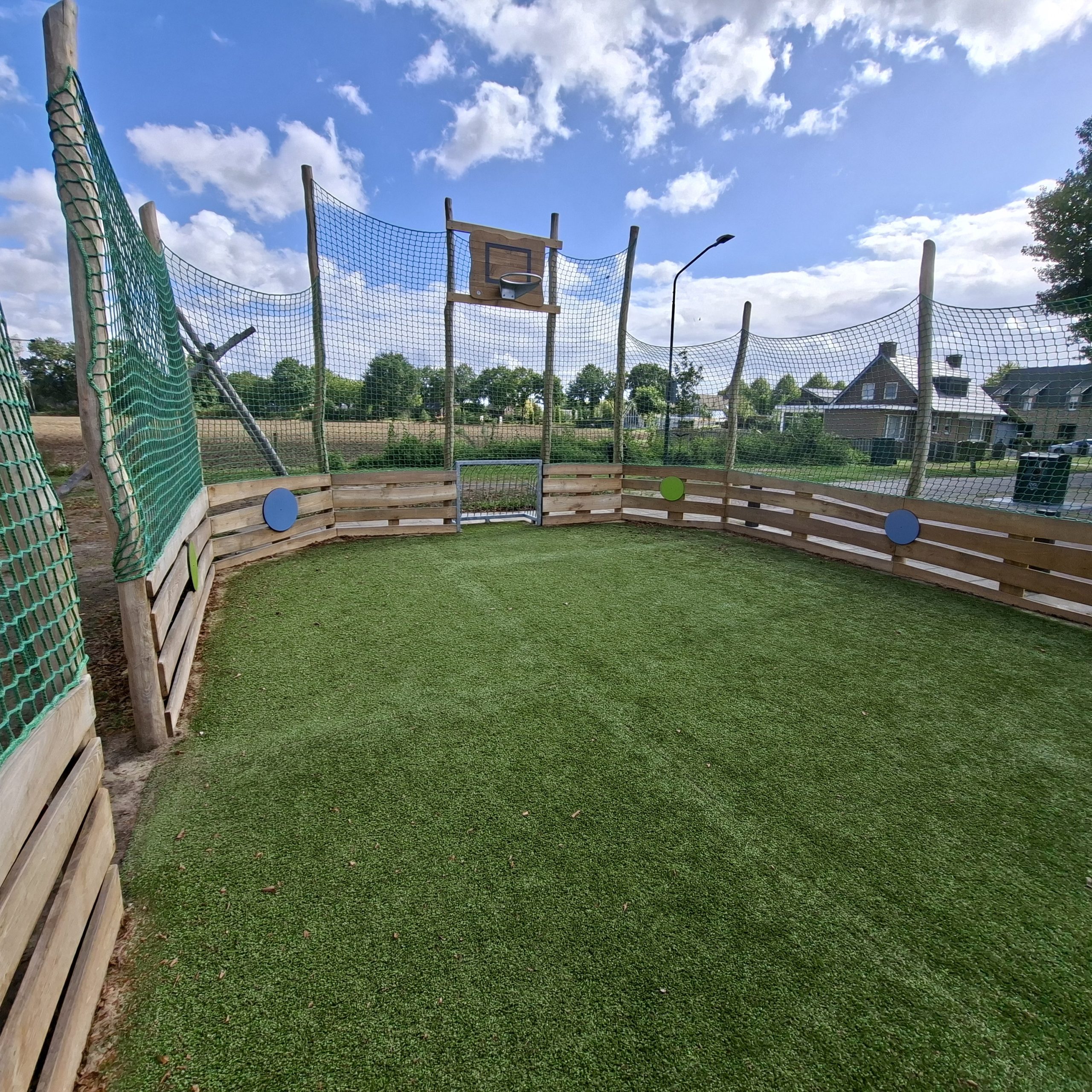 Nadat de natuurlijke, inclusieve speeltuin is gerealiseerd, was er nog een grote wens voor een voetbalveld voor de grotere jeugd van het dorp. Samen met vrijwilligers zijn de schouders onder dit initiatief gezet met een multifunctioneel speelveld als resultaat!